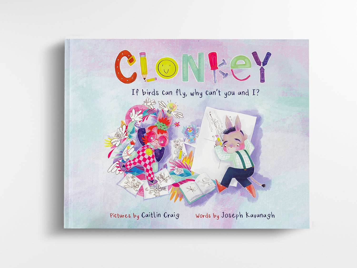 "Clonkey: If Birds Can Fly, Why Can't You and I?" is a whimsical adventure featuring Olala, a girl with a big imagination who loves taking risks, and Flint, a methodical boy who is always careful. Together, they embark on a mission to build a flying gizmo!